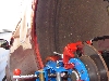 スピンドルの固定部。分厚い鉄板の2枚重ね38φで穴あけダヨ。